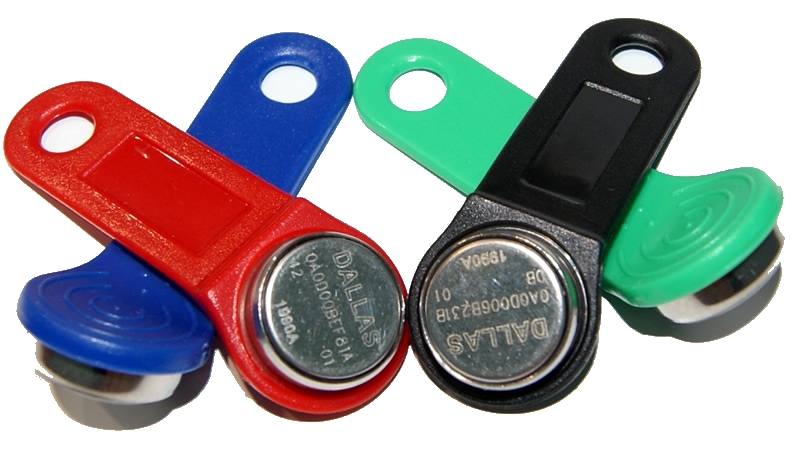 Zacznijmy od tego czym są klucze typu iButton. W przeciwieństwie do breloczków/kart zbliżeniowych, klucze iButton (zwane też "Dallasami") muszą fizycznie dotykać czytnika aby zostały odczytane przez system.